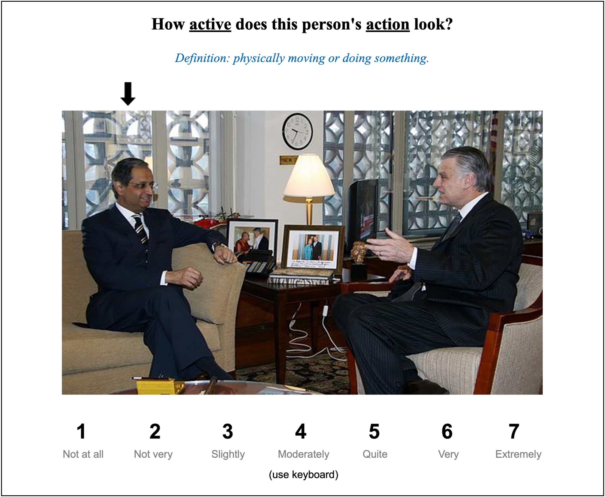 On top of each image, there will be a black arrow. This arrow indicates which person in the image you should rate.